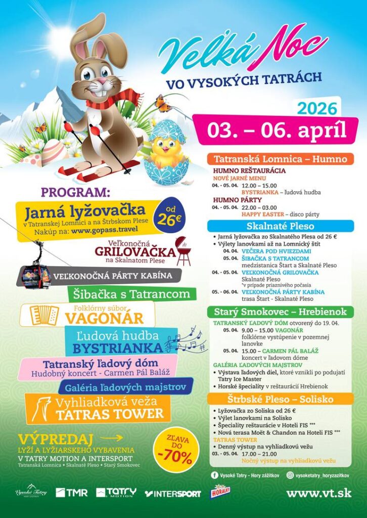 Prežite veľkonočné sviatky na tatranskom vzduchu a doprajte si relax, zábavu a dobré jedlo na svahu. Môžete sa tešiť na pestrý vysokotatranský program.